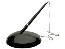 Stiloforo in plastica nera. Colore di scrittura blu con 3 refill di scorta tratto M. Catenina lunga 58 cm. Base sicura e aderente. Refill