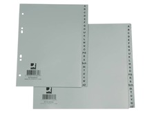 Divisori alfabetici metą altezza in ppl da 120 my, colore grigio, 24 pagine. Formato 23,0 x 21,0 cm.